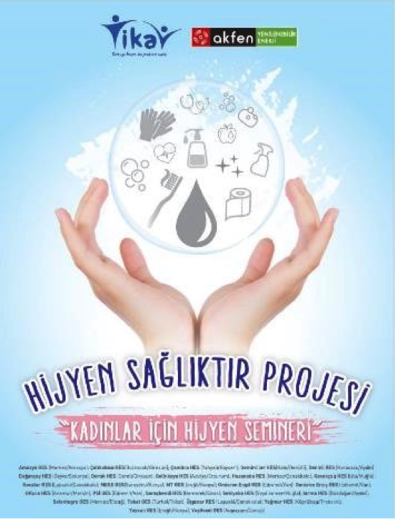 2019 yılında TİKAV koordinatörlüğünde, Türkiye’de toplam 26 farklı lokasyonda aktif Güneş, Rüzgâr ve Hidroelektrik Santral işletmesi bulunan Akfen Yenilenebilir Enerji A.Ş. finansörlüğünde “Hijyen Sağlıktır Projesi” hayata geçirildi. Proje kapsamında, Akfen Yenilenebilir Enerji A.Ş. bünyesindeki aktif işletmelerin bulunduğu 26 farklı mahalle/köyde seminerler düzenlendi. Bu seminerlerde kırsal bölgede yaşayan ve beden gücü ile çalışan kadınların sağlıklı olarak yaşamlarını sürdürebilmeleri için gerekli olan vücut ve besin hijyeni konularında 4000 kişiye ulaşıldı. Eğitim içeriği kapsamında katılımcılara hediye uygulama paketlemeleri dağıtıldı.
