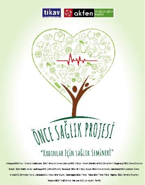2018’de TİKAV koordinatörlüğünde ve Akfen Yenilenebilir Enerji A.Ş. finansörlüğünde hayata geçirilen “Önce Sağlık Projesi” Türkiye’de 17 farklı lokasyonda uygulandı. Söz konusu lokasyonlar Akfen Yenilenebilir Enerji A.Ş.’ye bağlı aktif Hidro Elektrik Santralleri ve Güneş Enerjisi Santrallerinin bulunduğu kırsal bölgelerden oluşturuldu. Proje kapsamında, kırsal bölgede yaşayan 18 yaş üstü kadınlara ilkyardım, temel sağlık, kanser taraması, muayene rutinleri, kadın hastalıkları ve organ bağışı ile ilgili uygulamalı bir seminer verilerek ailenin temeli olan kadınların sağlık konusundaki farkındalıklarını artırmak amaçlandı. Ayrıca, ülkemizde profesyonel olmayanlar tarafından yapılan yanlış sağlık müdahalelerinin önüne geçilmesine, muayenelere karşı olan önyargıların kırılmasına ve özellikle kadın hastalıkları konusunda zamanında gerekli önlemlerin alınmasına destek olmak hedeflendi. Proje kapsamında gerçekleştirilen 17 çalışma sonrasında 1500 kişiye ulaşıldı. Eğitim içeriği kapsamında katılımcılara hediye uygulama paketlemeleri dağıtıldı.
